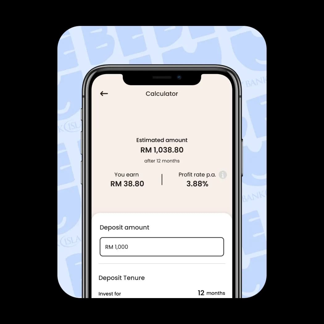 Open your Be U Term Deposit-i account, no branch visits required. Enjoy a seamless setup with user-friendly toggles and interface from anywhere.